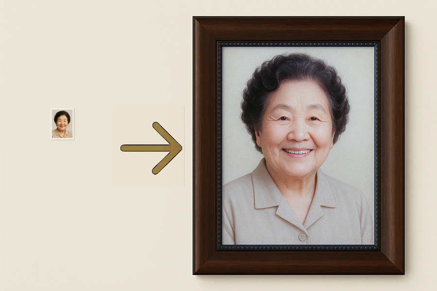 - • 감정의 재구성: 생전의 가장 인자하셨던 모습으로 재탄생시킵니다.